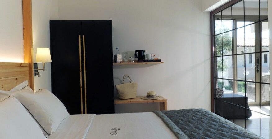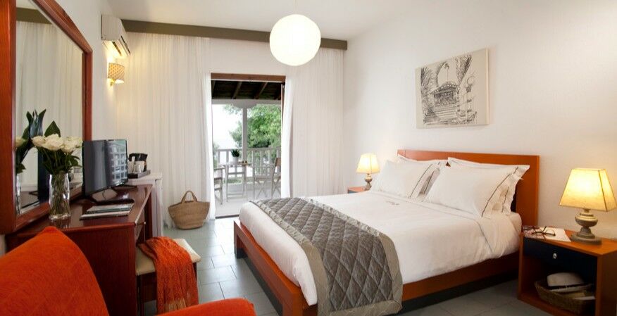 Les Chambres Supérieures offrent aux hôtes la possibilité de choisir entre une splendide vue sur la mer ou une vue paisible sur le jardin. Qu’elles soient situées dans le bâtiment principal ou dans l’un des bâtiments annexes, chaque chambre dispose d’un balcon privé, l’endroit idéal pour se détendre et admirer les paysages pittoresques du golfe de Toroneos ainsi que les jardins luxuriants de l’hôtel. Les Chambres Supérieures sont également équipées d’un coffre-fort en chambre.