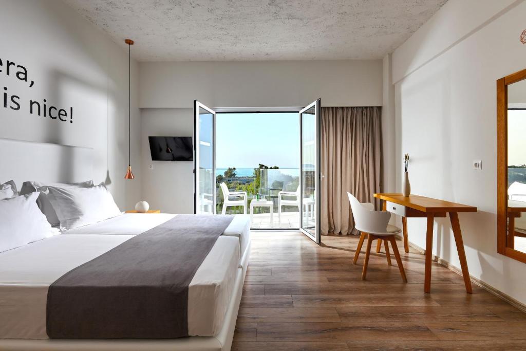 L’hôtel accueille ses hôtes dans des hébergements élégants, garantissant un séjour confortable empreint de la chaleureuse hospitalité crétoise.