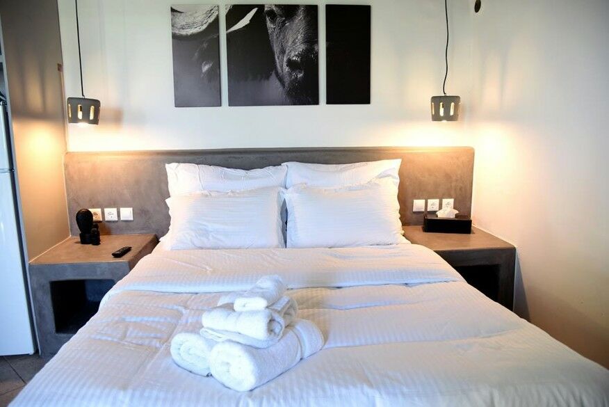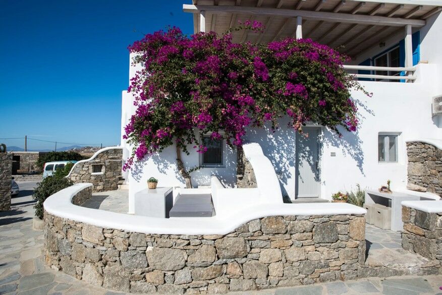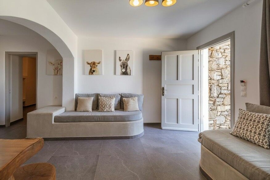Un jardin sinueux magnifiquement entretenu mène aux chambres avec vue sur le jardin. À l’intérieur, finitions simples et de haute qualité, couleurs claires et relaxantes et conforts modernes offrent au voyageur tout le nécessaire pour un séjour confortable. Chaque chambre, équipée d’une salle de bain privative avec douche, lit double escamotable, canapé-lit, coin cuisine et fer à repasser, et terrasse avec agréable coin salon, allie vacances confortables et somptueuses aux Cyclades.