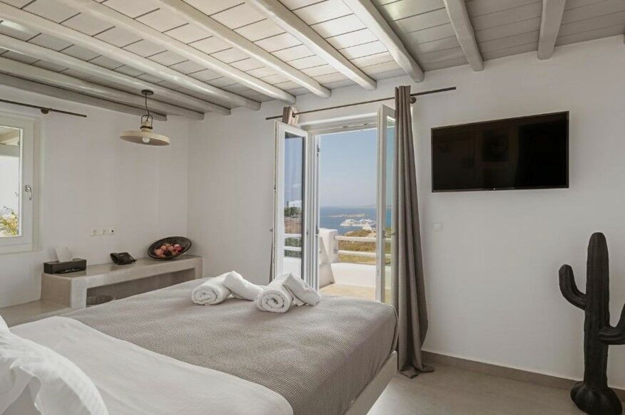 Les chambres Supérieure avec vue mer, dans le pur style myconien, sont magnifiques et accueillantes, idéales pour se détendre et profiter de ce que Mykonos offre : la brise, les panoramas et le climat, et disposent d’une terrasse ou d’un balcon avec mobilier d’extérieur, offrant une vue à 180 degrés sur la mer Égée et les îles environnantes.