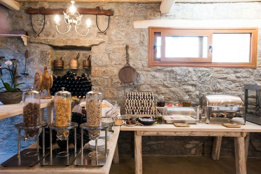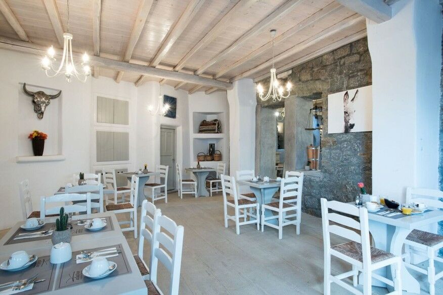 Un copieux buffet petit-déjeuner, riche en arômes et saveurs artisanales des Cyclades. Commencez la journée avec un délicieux petit-déjeuner débordant de saveurs et nutriments de la tradition grecque, idéal pour ceux qui suivent un régime sain. Le petit-déjeuner est servi dans une salle spécialement conçue, meublée dans le style rural traditionnel de Mykonos. Le buffet méditerranéen raffiné, composé de produits biologiques locaux tels que des douceurs traditionnelles, fruits frais, biscuits, lait, yaourt grec, café, thé et de nombreux autres ingrédients de haute qualité, fournira l’énergie nécessaire pour les vacances. Chaque jour, le buffet matinal s’enrichit de nouveaux plats créatifs et desserts à déguster. L’objectif est d’offrir des délices élégants dans un environnement esthétiquement plaisant, inspiré de la philosophie rurale de Mykonos de l’hôtel.