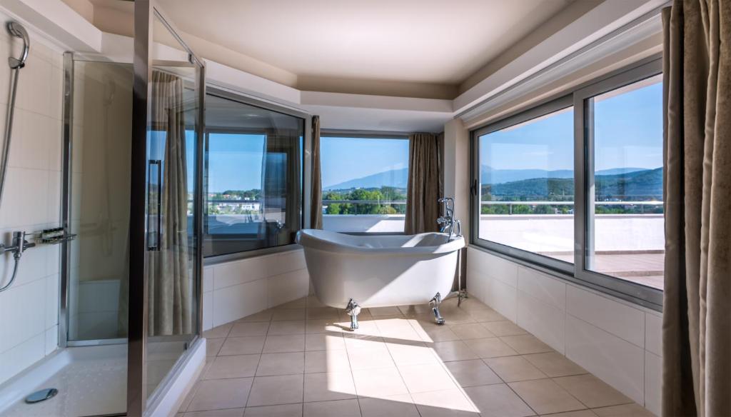 Sa position privilégiée, la fusion harmonieuse de paysages côtiers et montagnards, et un vaste domaine d'environ 6 hectares en font la destination idéale pour des vacances en famille inoubliables. Le resort propose 192 chambres et suites élégamment meublées, de multiples piscines pour le plaisir des adultes et des enfants, une plage privée au sable fin, un somptueux SPA pour votre bien-être, une taverne grecque traditionnelle où déguster des saveurs authentiques et divers bars pour des moments de détente.