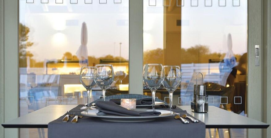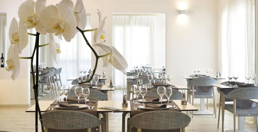 Le restaurant et le bar sont situés dans le corps central et se caractérisent par une atmosphère accueillante et des salles élégantes et climatisées, avec possibilité de places assises sur la véranda extérieure.