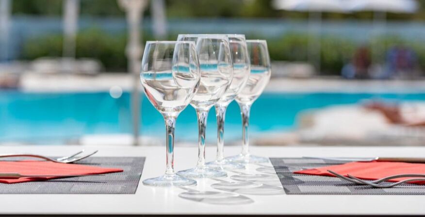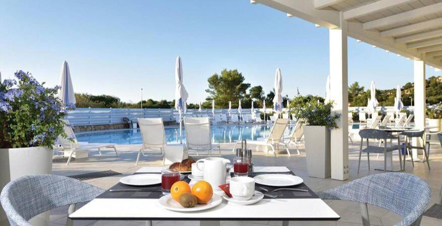 Boissons en journée de 10:00 à 23:00 au bar piscine/réception avec service au verre ou aux distributeurs automatiques : café (distributeur automatique), café américain (distributeur automatique), cappuccino (distributeur automatique), thé (distributeur automatique), chocolat (distributeur automatique), eau plate et gazeuse, jus d`orange/ananas/ace, boissons non alcoolisées comme cola et limonade, vin rouge et blanc, bière pression, Mirto, Limoncello, Vermouth blanc et rouge, Whisky, 1 cocktail alcoolisé du jour, 1 cocktail sans alcool du jour).