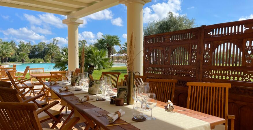 Le charmant Exoticus, a charming restaurant, est l’un des lieux qui reflète le mieux l’atmosphère raffinée du Resort. Sa vaste et élégante cour extérieure, associée à la salle intérieure lumineuse ornée de grandes baies vitrées, crée des ambiances différentes mais tout aussi fascinantes, parfaites pour des dîners sous les étoiles ou des événements privés dans un cadre intime et sophistiqué. Idéal en toute saison pour vivre une expérience gastronomique inoubliable, il propose une cuisine recherchée, à la fois fraîche et simple.